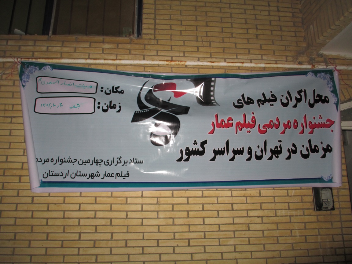 جمعه شب 20 دیماه ، توسط ستاد اکران جشنواره عمار در اردستان ، مستند "بهشت ماندنی است" با موضوع تاریخ و پژوهش درخصوص تخریب قبرستان بقیع به کارگردانی احمد ابراهیمی و مهرداد ابراهیمی در هیئت انصارالمهدی(عج) عاشقان حسین(ع) به نمایش در آمد .